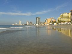Along the central and north Pacific coast, the biggest draws are beaches of Mazatlán city and the resort town of Puerto Vallarta. Less frequented is the sheltered cove of Bahía de Navidad, the beach towns of Bahía Kino, and the black sands of Cuyutlán. San Carlos, home of the Playa los Algodones (Cotton Beach), is a winter draw, especially for retirees.