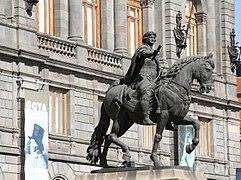El Caballito, equestrian sculpture of King Charles IV of Spain by Manuel Tolsá on the back the Museo Nacional de Arte (National Museum of Art)
