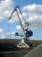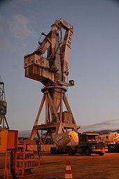 Two different types of harbor cranes can be identified with a varying geographical distribution: While gantry cranes, which pivoted on a central vertical axle, were commonly found at the Flemish and Dutch coastside, German sea and inland harbors typically featured tower cranes where the windlass and treadwheels were situated in a solid tower with only jib arm and roof rotating.[15] Dockside cranes were not adopted in the Mediterranean region and the highly developed Italian ports where authorities continued to rely on the more labor-intensive method of unloading goods by ramps beyond the Middle Ages.[33]