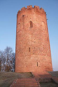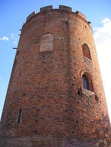 The Tower of Kamyenyets, often called by the misnomer the White Tower (Belarusian: Белая вежа, transliteration: Bielaya Vieža or Belaya Vezha), is the main landmark of the town of Kamyenyets in Belarus. The name Bielaja Vieža (alternative transliteration: Belaya Vezha), which literally means White Tower or White Fortress in Belarusian, presumably derives from the tower's proximity to the Belavezhskaya Pushcha Forest, but not from its color, which has been brick-red through the ages, never white.[1]