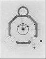The 12-metre-tall structure has a diameter of about 8 metres and was topped in antiquity by a weathervane-like Triton that indicated the wind direction.[3] Below the frieze depicting the eight wind deities—Boreas (N), Kaikias (NE), Apeliotes (E), Eurus (SE), Notus (S), Lips (SW), Zephyrus (W), and Skiron (NW)—there are eight sundials.[3] In its interior, there was a water clock (or clepsydra), driven by water coming down from the Acropolis. Research has shown that the considerable height of the tower was motivated by the intention to place the sundials and the wind-vane at a visible height on the Agora, effectively making it an early example of a clocktower.[4] According to the testimony of Vitruvius and Varro, Andronicus of Cyrrhus designed the structure.[5] The tower's columns bore capitals of a design now known as "Tower of the Winds Corinthian", although they lack the volutes ordinarily found in Corinthian capitals.