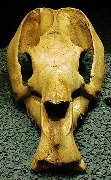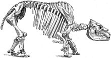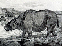 Toxodon (meaning "bow tooth" in reference to the curvature of the teeth) is an extinct genus of South American mammals from the Late Miocene to early Holocene epochs (Mayoan to Lujanian in the SALMA classification) (about 11.6 million to 11,000 years ago).[1][2] It is a member of Notoungulata, one of several now extinct orders of hoofed mammals indigenous to South America distinct from living perissodactyls and artiodactyls. It was among the largest and last members of its order, and was probably the most common large hoofed mammal in South America of its time.