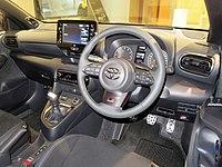 The GR (Gazoo Racing) Yaris is a performance-oriented variant of the Yaris which is built on a combination between the GA-B and GA-C platforms, thus sharing a few parts from the standard Yaris. Succeeding the limited-production Vitz/Yaris GRMN in Japan and Europe and Vitz GR in Japan, it was first unveiled at the 2020 Tokyo Auto Salon.[15][29][30] Built as a homologation model for the FIA World Rally Championship, Toyota needed to produce 25,000 units or more in a continuous 12-month production.[31] It is available in two engine options: a Gazoo Racing-built, turbocharged and direct/port-injected 1.6-litre G16E-GTS engine that produces 192–200 kW (257–268 hp; 261–272 PS) and 360–370 N⋅m (266–273 lb⋅ft) of torque, and a standard 1.5-litre 88 kW (118 hp; 120 PS) M15A-FKS engine found in the regular Yaris models. The latter engine option is only available in RS trim level in Japan.[32][33][34]