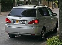 The Toyota Ipsum, Picnic, SportsVan or Avensis Verso is a seven-seater multi-purpose vehicle produced by the Japanese automaker Toyota from 1995 to 2009. The Ipsum, like many Toyota products, was shared as a trio of the Toyota Gaia, and sold only at Japanese Toyota dealerships called Toyota Store, next to the Toyota Carina. The Gaia was unique to Toyopet Store locations, and the Toyota Nadia was sold at Toyota Corolla Store.