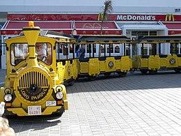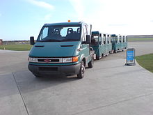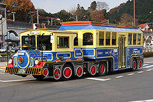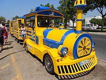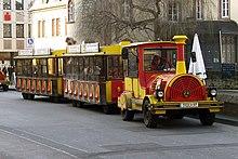 Trackless trains are often used for the transport of tourists instead of other public transport modes. These may be seasonal services, linking attractions such as museums and zoos or other tourist destinations with central areas. Often, the train ride itself is a tourist attraction, offering sightseeing along scenic routes as well as a transport service. In the Swiss town of Gruyères, a trackless train is the only vehicle allowed in the pedestrianized streets.[10] A similar train is also used to move students between the train station and the faculties in the Outer Alcalá de Henares University Campus.[11]