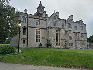 Much of the rear facade of the house was remodeled in the 19th century in a Tudor Gothic style.[3] However, the haphazard fenestration suggesting mezzanine floors, and stonework and the need for a low buttress suggest that the lower floors, at least, may belong to the 16th and 17th-centuries. Facing the rear are a number of outbuildings, including the former stables, which date from 1849 to 1860.[3]
