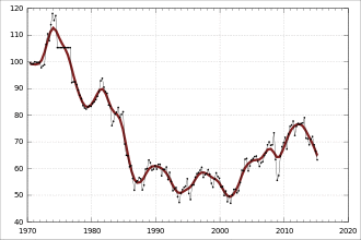 - Data from Bank for International Settlements: effective exchange rate indices