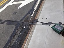 A traffic counter is a device, often electronic in nature, used to count, classify, and/or measure the speed of vehicular traffic passing along a given roadway. The device is usually deployed in near proximity to the roadway and uses an on-road medium, such as pneumatic road tubes laid across the roadway, piezo-electric sensors embedded in the roadway, inductive loops cut into the roadway, or a combination of these to detect the passing vehicles. Pneumatic road tubes are generally used for temporary studies to study a sample of traffic, while piezo-electric sensors and inductive loops are used for permanent studies which can ascertain seasonal traffic trends and are often used in congestion monitoring on major roads. One of the first traffic counting units, called traffic recorders, was introduced in 1937 [where?], operated off a strip laid across the street, and used a six volt battery. Each hour it printed off a paper strip with the total for that hour.[2] A newer type of temporary sensor consists of a metal detector and data recorder in a single package, adhered to the pavement in the center of a driving lane, unlike the pneumatic tube detector which cannot differentiate between lanes. Recently, off-road technologies have been developed. These devices generally use some sort of transmitted energy such as radar waves or infrared beams to detect vehicles passing over the roadway. These methods are generally employed where vehicle speeds and volume are required without classification which require on-road sensors.[3][4]