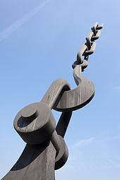 The Imperial War Museum North, opened on 5 July 2002, is in Trafford Wharf, on the southern edge of the ship canal looking over towards Salford Quays. An example of deconstructivist architecture, it was the first building in the United Kingdom to be designed by Daniel Libeskind. The structure consists of three interlocking sections: the air shard, the earth shard, and the water shard, representing a world torn apart by conflict. Entrance to the museum is via the air shard, which is 180 feet (55 m) in height, and is open to the elements. It has a viewing platform about 95 feet (29 m) high, offering views across Salford and the Quays towards Manchester city centre. The museum houses two extensive exhibition spaces. The largest is dedicated to the permanent exhibition covering conflicts from 1900 to the present day, and the other space is used for special exhibitions.[81]