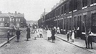 In 1898, a large plot of land was sold to Edmund Nuttall & Co. for the construction of 1,200 houses. The houses were never built, but the land later became the site of Trafford Park Village, known locally as The Village.[74] The announced arrival of the Westinghouse factory acted a spur to development, and in 1899, Trafford Park Dwellings Ltd was formed, with the aim of providing housing for the anticipated influx of new workers. Nuttall's land was acquired, and by 1903 more than 500 houses had been built, rising to over 700 when the development was completed in 1904. In 1907 it was estimated that the population of the Village was 3,060.[75] The development was laid out in a grid pattern, with the roads numbered instead of being named. Avenues numbered 1 to 4 run north–south, streets numbered 1 to 12 run east–west.