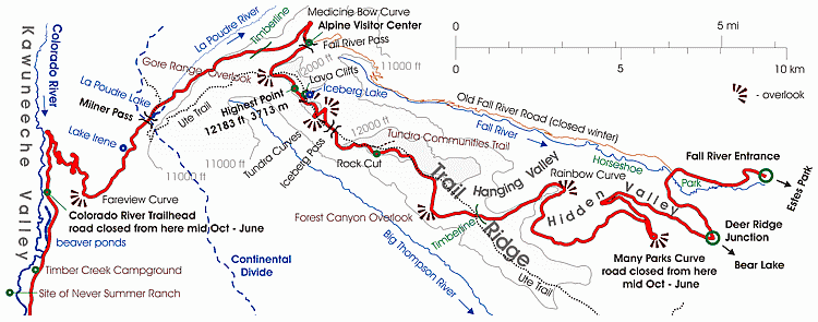 Schematic map of the Trail Ridge Road | |