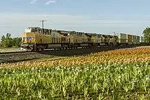 There are many different types of freight train, used for carrying a huge variety of different kinds of freight, with various types of wagon. One of the most common types on modern railways are intermodal (container) trains, where the containers can be lifted on and off the train by cranes and loaded off or onto trucks or ships. In the US, this type of freight train has largely superseded the traditional boxcar (wagon-load) type of freight train, which requires the cargo to be loaded or unloaded manually. In Europe the sliding wall wagon has taken over from the ordinary covered goods wagon.