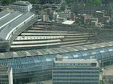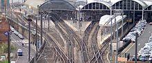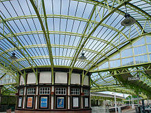A train shed is a building adjacent to a station building where the tracks and platforms of a railway station are covered by a roof. It is also known as an overall roof. Its primary purpose is to store and protect from the elements train cars not in use, The first train shed was built in 1830 at Liverpool's Crown Street Station.