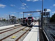 Tramway line 7 is an 11.2-kilometre (7.0 mi) route serving 18 stations[8] between Villejuif — Louis Aragon (southwestern terminus of Paris Métro Line 7) and Athis-Mons, via Rungis International Market and Orly airport ; which opened on November 16, 2013.[16] in order to both allow a supplemental rail service from Paris to the Orly airport and replace bus line 285, that also became crowded beyond reason.