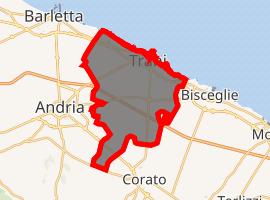 Located by the Adriatic Coast, between Barletta and Bisceglie, Trani borders with the municipalities of Andria, Barletta, Bisceglie and Corato, in the Province of Bari.[8]