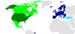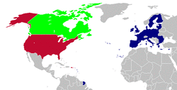 Transatlantic relations refer to the historic, cultural, political, economic and social relations between countries on both side of the Atlantic Ocean. Sometimes it specifically means relationships between the Anglophone North American countries (the United States and Canada), and particular European countries or organizations, although other meanings are possible.