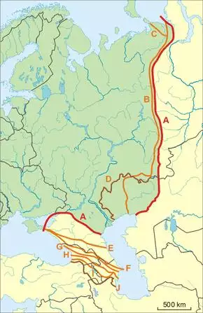 - ^ Allen F. Chew. An Atlas of Russian History: Eleven Centuries of Changing Borders. Yale University Press, 1967. pp 74