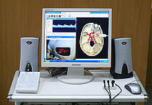 Functional transcranial Doppler sonography (fTCD) is a neuroimaging tool for measuring cerebral blood flow velocity changes due to neural activation during cognitive tasks.[8] Functional TCD uses pulse-wave Doppler technology to record blood flow velocities in the anterior, middle, and posterior cerebral arteries. Similar to other neuroimaging techniques such as functional magnetic resonance imaging (fMRI) and positron emission tomography (PET), fTCD is based on a close coupling between regional cerebral blood flow changes and neural activation. Due to a continuous monitoring of blood flow velocity, TCD offers better temporal resolution than fMRI and PET. The technique is noninvasive and easy to apply. Blood flow velocity measurements are robust against movement artifacts. Since its introduction the technique has contributed substantially to the elucidation of the hemispheric organization of cognitive, motor, and sensory functions in adults and children.[9][10] fTCD has been used to study cerebral lateralization of major brain functions such as language,[11][12][13] face processing,[14] color processing,[15] and intelligence.[16] Moreover, most established neuroanatomical substrates for brain function are perfused by the major cerebral arteries that could be directly insonated. Lastly, fTCD has been used as a brain–computer interface modality.[17]