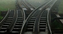Systems like the Locher rack system do not allow normal switches and transfer tables or rotary switches are used instead, as on the Pilatus Railway. A transfer table contains two tracks with different configurations. The table is moved sideways or rotated[2] to choose the configuration that connects the track that the incoming train will be traveling from and to. Using transfer table as a switch or a rotary switch allows the center rack rail to be aligned for the cog wheels to continually drive the train forward while crossing the switch.
