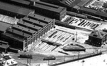 An example of both pieces of equipment was in use up until the 1970s at the Collinwood Yards in Cleveland, Ohio. It allowed a single turntable to serve a linear train shed.