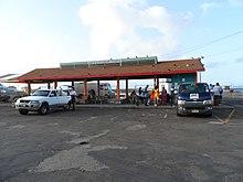 The "Sea Bridge" ferry, which takes cars (and also pedestrians), docks in the northwest part of Nevis at Cades Bay, and runs between there and Majors Bay on St. Kitts. The Sea Bridge ferry runs six times a day in each direction [2]. For pedestrians it is worth noting that there are no facilities of any kind at Majors Bay (no houses, no businesses, etc.), only a small wooden gazebo as shelter from sun or rain, and so, if you have not already arranged to be met at Majors Bay by car or taxi, you will have to enjoy Majors Bay for a couple of hours in its more or less wild state before taking the ferry back to Nevis.