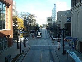 One noted feature of Winnipeg's urban road network is Confusion Corner, a complex intersection where four arterial roads and a special Winnipeg Transit bus lane are funnelled into a rhomboid-shaped loop of one-way streets at a junction with Osborne Street.[7] Similarly, many downtown streets in Winnipeg are one-way, often making navigation in the area frustrating. Other than downtown and around Polo Park, however, one-way streets in Winnipeg are rare.
