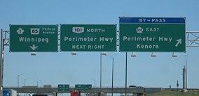 Winnipeg is one of the first Canadian cities of its size to have a ring road (the Perimeter Highway) which provides a by-pass for travellers on the Trans-Canada Highway. Within the city, the Trans-Canada Highway follows regular city streets.