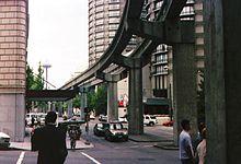 The Seattle Center Monorail, constructed for the Century 21 Exposition, runs approximately 1 mile (1.6 km) between Seattle Center in Lower Queen Anne and Westlake Center in Downtown.