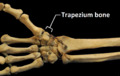 The trapezium is susceptible to arthritis at the joint with the metacarpal bone of the thumb, due to overuse.[2]
