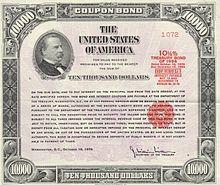 The Treasury raised funding throughout the war by selling $21.5 billion in 'Liberty bonds.' These bonds were sold at subscription where officials created coupon price and then sold it at par value. At this price, subscriptions could be filled in as little as one day, but usually remained open for several weeks, depending on demand for the bond.[2]