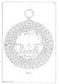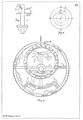 The whole of this section describes the form of an astrolabe. The astrolabe is based on a large plate ("The moder" or "mother") which is arranged to hang vertically from a thumb ring. It has "a large hool, that resceiveth in hir wombe the thin plates".[19][i] The back of the astrolabe is engraved with various scales (see Skeat's sketch below). Mounted on the back is a sighting rule (Skeat's fig 3, below) "a brod rule, that hath on either end a square plate perced with certein holes".[20][j] To hold it all together there is a "pyn" with a "littel wegge" (wedge) as shown below at Skeat's fig 7.[21] Into the "womb" various thin plates can be inserted which are designed for a particular place: "compowned after the latitude of Oxenforde".[22][k] These plates show the star map. Surmounting them is a "riet" or "rete" which is a pierced framework carrying the major stars shown at fig 9. Outside all is another rule, this time not with sighting holes, mounted on the common pivot, see fig 6.