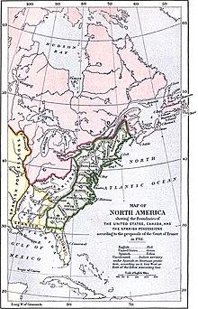 The actual geography of North America turned out not to match the details used in the treaty. The Treaty specified a southern boundary for the United States, but the separate Anglo-Spanish agreement did not specify a northern boundary for Florida, and the Spanish government assumed that the boundary was the same as in the 1763 agreement by which they had first given their territory in Florida to Britain. While that West Florida Controversy continued, Spain used its new control of Florida to block American access to the Mississippi, in defiance of Article 8.[19] The treaty stated that the boundary of the United States extended from the "most northwesternmost point" of the Lake of the Woods (now partly in Minnesota, partly in Manitoba, and partly in Ontario) directly westward until it reached the Mississippi River. But in fact the Mississippi does not extend that far northward; the line going west from the Lake of the Woods never intersects the river. Additionally, the Treaty of Paris did not explain how the new border would function, in terms of controlling the movement of people and trade between Britain's Canadian colonies and the United States. The American diplomats' expectation of negotiating a commercial treaty with Great Britain that would resolve some of the unfinished business of the Treaty of Paris failed to materialize in 1784; the United States would wait a decade until negotiating its first commercial agreement with the British Empire with the Jay Treaty.[20]