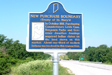 The treaty with the Miami was signed on October 6, 1818, at St. Mary's, Ohio, between representatives of the United States and the Miami tribe and others living in their territory. Jonathan Jennings, Lewis Cass, and Benjamin Parke, acting as representatives of the United States, signed the treaty. The accord contained seven articles. Based on the terms of the accord, the Miami ceded territories south of the Wabash River covering a large portion of central Indiana, subsequently known as the "New Purchase", to the United States. This tract consisted of the entire central portion of Indiana between the Wabash River and the old boundary established by the Treaty of Fort Wayne (1809). It also established the first Indian reservation in Indiana, the Great Miami Reserve in the northern portion of the New Purchase. In another tenet of the accord, the United States agreed to pay the Miami a perpetual annuity of fifteen thousand dollars. Moreover, the United States agreed to construct one gristmill and one sawmill, as well as provide one blacksmith, one gunsmith, and agricultural implements. The Miami would also be provided one hundred and sixty bushels of salt annually.[2]