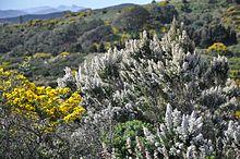 There are disjunct populations in Africa including the Ethiopian Highlands, the mountains of Ruwenzori and the Cameroon Mountains. In Africa it is normally referred to as giant heather. It is native to the maquis shrublands surrounding the Mediterranean Basin north to Bulgaria and west to Portugal and the Canary and Madeira Islands. Naturalised populations occur in south-eastern Australia.[4]