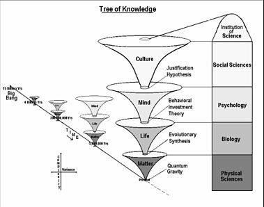 The Tree of Knowledge (ToK) System is a new map of Big History that traces cosmic evolution across four different planes of existence, identified as Matter, Life, Mind and Culture that are mapped respectively by the physical, biological, psychological and social domains of science. The Tree of Knowledge (ToK) System was developed by Gregg Henriques, who is a professor and core faculty member in the Combined-Integrated Doctoral Program in Clinical and School Psychology at James Madison University.[1] The ToK System is part of a larger Unified Theory of Knowledge that Henriques describes as a consilient scientific humanistic philosophy for the 21st Century.