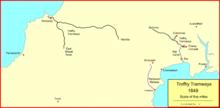 An Act of Parliament was secured in 1844 for the "Treffry Estate Railway, or Newquay Railway",[13] and this may have been due to the greater involvement in public works of the Newquay line construction. (A further Act, the Treffry's Estate (Newquay Railway) Act of 1857 confirmed the right of the trustees to operate and maintain the lines already built, but allowed the abandonment of some sections authorised but not built; this latter Act forbade the use of locomotives without the approval of the Board of Trade.)[6]
