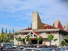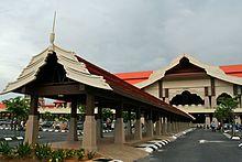 There are several theories on the origin of the name "Terengganu". One theory attributes the name's origin to terang ganu, Malay for 'bright rainbow'.[5] Another story, said to have been originally narrated by the ninth Sultan of Terengganu, Baginda Omar, tells of a party of hunters from Pahang roving and hunting in the area of what is now southern Terengganu. One of the hunters spotted a big animal fang lying on the ground. A fellow party member asked to which animal did the fang belong. The hunter, not knowing which animal, simply answered taring anu (Malay: 'fang of something'). The party later returned to Pahang with a rich hoard of game, fur and sandalwood, which impressed their neighbours. They asked the hunters where did they source their riches, to which they replied, from the land of taring anu, which later evolved into Terengganu.[5] Terengganu was called Trangkanu (Thai: ตรังกานู) by the Siamese when it was under their influence. Terengganuans usually pronounce Terengganu as Tranung or Ganu with the G often being emphasized. [6]