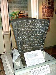 Terengganu was the first Malay state to receive Islam, as attested to by the Terengganu Inscription Stone with Arabic inscriptions found in Kuala Berang, the capital of the district of Hulu Terengganu. The inscribed date which is incomplete due to damage can be read as various dates from 702 to 789 AH (1303 to 1387 CE).[7] Terengganu became a vassal state of Malacca, but retained considerable autonomy with the emergence of Johor Sultanate.