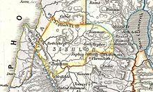 At the division of the land of Israel among the seven tribes not yet provided for, the lot of Zebulun was third. The tribe's territory started with Sarid (Joshua 19:10), which is supposed to have been Tel Shadud,[4] some five miles southwest of Nazareth. Zebulun's boundaries have not been made out. Of the nineteen proper names that the book of Joshua gives to guide us, only Bethlehem of Galilee (Beit lahm, seven miles northwest of Nazareth) can be identified with certainty, although the archaeological site Tel Hanaton is associated with the city Hanaton listed as the boundary with Asher. The historian Josephus assigns to Zebulun the land near to Carmel and the sea, as far as the Lake of Genesareth.[5] To its northwest lay Asher, to the southeast Issachar. It included a part of the Jezreel Valley, and the great highway from the sea to the lake. Within the territory of Zebulun, Jesus was raised, and did and said much that is narrated in the Gospels, especially in the Synoptics, about his Galilean ministry.