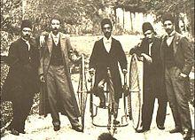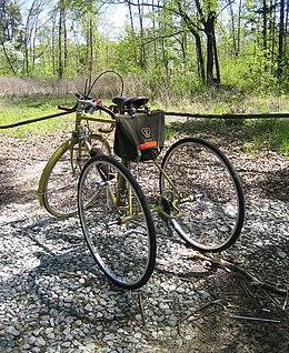 Some early pedal tricycles from the late 19th century used two wheels in tandem on one side and a larger driving wheel on the other.[11]