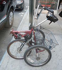 A tricycle, often abbreviated to trike,[1][2][3][4] is a human-powered (or gravity-powered) three-wheeled vehicle.