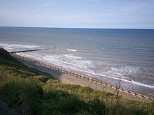 The cliff face at Trimingham has the youngest chalk in the United Kingdom, contains shells, bivalves, crinoids and oysters, and is subject coastal erosion.[7]