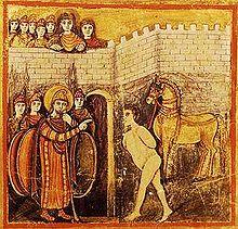 The main ancient source for the story is the Aeneid of Virgil, a Latin epic poem from the time of Augustus. The event is also referred to in Homer's Odyssey.[1] In the Greek tradition, the horse is called the "wooden horse" (δουράτεος ἵππος douráteos híppos in Homeric/Ionic Greek (Odyssey 8.512); δούρειος ἵππος, doúreios híppos in Attic Greek).