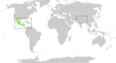 Tropical and subtropical coniferous forests are a tropical forest habitat type defined by the World Wide Fund for Nature. These forests are found predominantly in North and Central America and experience low levels of precipitation and moderate variability in temperature. Tropical and subtropical coniferous forests are characterized by diverse species of conifers, whose needles are adapted to deal with the variable climatic conditions.[1] Most tropical and subtropical coniferous forest ecoregions are found in the Nearctic and Neotropical realms, from the Mid-Atlantic states to Nicaragua and on the Greater Antilles, Bahamas, and Bermuda. Other tropical and subtropical coniferous forests ecoregions occur in Asia. Mexico harbors the world's richest and most complex subtropical coniferous forests.[2] The conifer forests of the Greater Antilles contain many endemics and relictual taxa.[1][3]