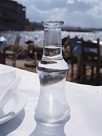Tsikoudia (Greek: τσικουδιά, romanized: tsikoudiá, literally "terebinth"), is an Geographical Indication for pomace raki (pomace distillate) in Crete and the greek islands. Tsikoudia is an alcoholic beverage, a fragrant, grape-based pomace brandy of Cretan origin that contains 40% to 65% alcohol by volume.[1] Tsikoudia is made by distilling of pomace, what remains of grapes pressed in winemaking. The pomace ferments for about six weeks in a tightly-sealed barrel, and is then distilled.
