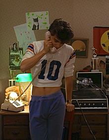 A tube top, colloquially known in the UK as a boob tube,[1] is a shoulderless, sleeveless women's garment that wraps around the upper torso. It is generally tight over the breasts, and usually uses elastic bands at its top and bottom to prevent it from falling. The tube top's precursor was a beachwear or informal summer garment worn by young girls in the 1950s that became more widely popular in the 1970s and returned to popularity in the 1990s and 2000s.[2]