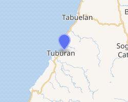 Tuburan is bordered to the north by the town of Tabuelan, to the west is the Tañon Strait, to the east are the towns of Carmen, Catmon and Sogod, and to the south is the town of Asturias.