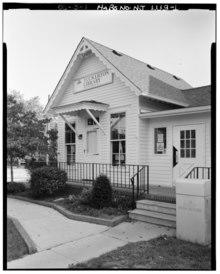 By the turn of the 1800s, Tuckerton was home to a robust downtown area of shops, boarding houses, and hotels. Around 1800, Ebenezer Tucker built the "Union House" on the corner of Main Street & Green Street, which served as a post office, stagecoach stop, and lodge.[31] The Union House was later known as the "Carlton House", which operated as an inn and tavern until it was destroyed by fire in 1964.[31] The "Everett House" was built in the 1870s as a first-class temperance hotel to serve railroad passengers; the building, on Main Street between Green Street and Water Street, was demolished by the mid-20th Century.[31] The Lakeside Hotel, situated on Main Street next to Lake Pohatcong, operated well into the 20th Century before its closure and demolition; a plaque commemorating World War I veterans on the side of the building was moved to its current site in Greenwood Cemetery.[31]