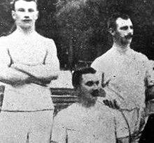 The French team, representing the Racing Club de France, included 3 players who were later part of the gold-winning rugby team for France.[b] Jean Collas, Charles Gondouin, and Émile Sarrade were all part of both teams,[9] while it is often misreported that another of their rugby teammates, the Haitian-born Constantin Henriquez was also on the tug of war team, but this was a case of mistaken identity due to their similar names, with Colombian-born Francisco Henríquez de Zubiría taking part in the tug of war.[10] The other two members of the tug-of-war team were Raymond Basset and Joseph Roffo.[4] The combined Scandinavian team featured three athletes from each of Sweden and Denmark. The Swedish competitors were August Nilsson, who also took part in the pole vault and shot put,[11] Gustaf Söderström, who was competing in the shot put and the discus throw,[12] and Karl Staaf, who did the pole vault, triple jump, standing triple jump and hammer throw.[13] Only one of the three Danish pullers took part in any other events;[9] Charles Winckler competed in the shot put and discus throw.[14] Dane Edgar Aabye was at the Games as a journalist for the Politiken newspaper, but was recruited into the team to make up the numbers as one of the original entrants was injured.[15][16] Eugen Schmidt, the sixth member of the team, had competed in the 100 metres sprint and the 200 metre rifle shooting at the 1896 Games, and founded the Danish Sports Federation that same year.[17]