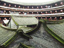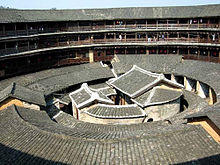 A tulou (simplified Chinese: 土楼; traditional Chinese: 土樓; pinyin: tǔlóu; Pe̍h-ōe-jī: thó͘-lâu), or "earthen building", is a traditional communal Hakka people residence found in Fujian, in South China, usually of a circular configuration surrounding a central shrine, and part of Hakka architecture. These vernacular structures were occupied by clan groups.